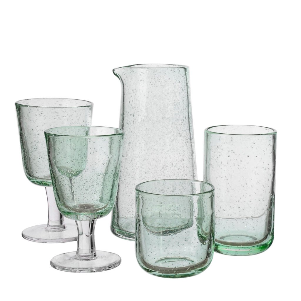 • Samlife-23047 Mexican Style Green Color Wine Glass & Highball Glass & Lowball Glass & Glass Pitcher with Bubble Body