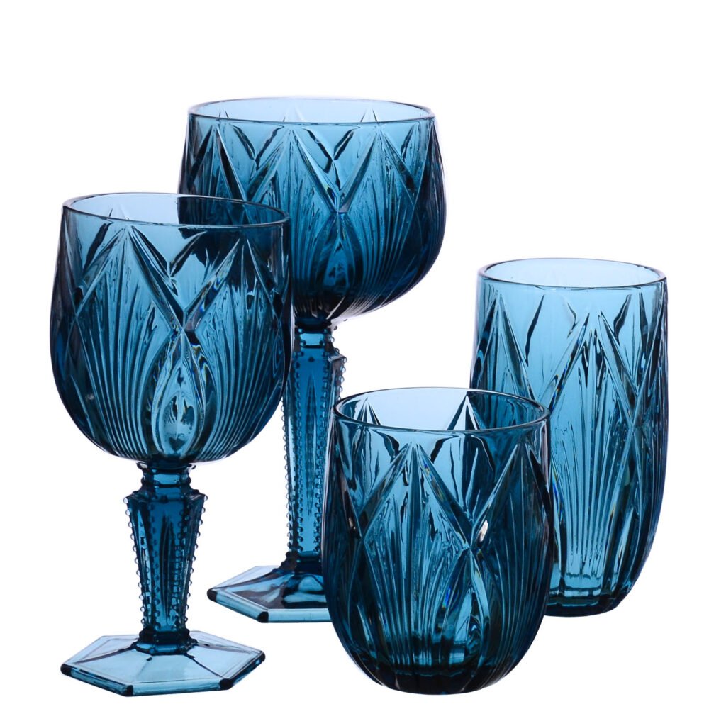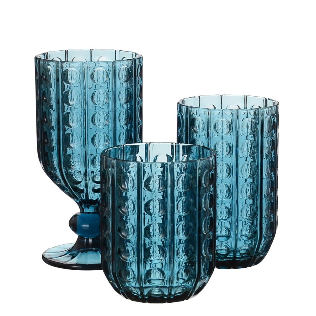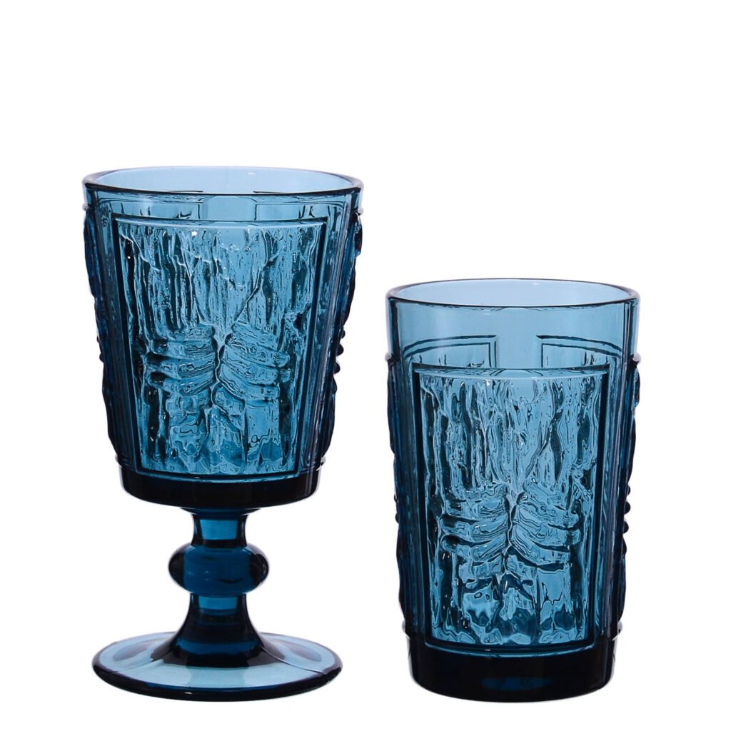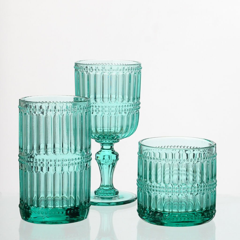 Samlife-23054 Vintage Textured Wine Glass & Highball Glass & Candy Jar