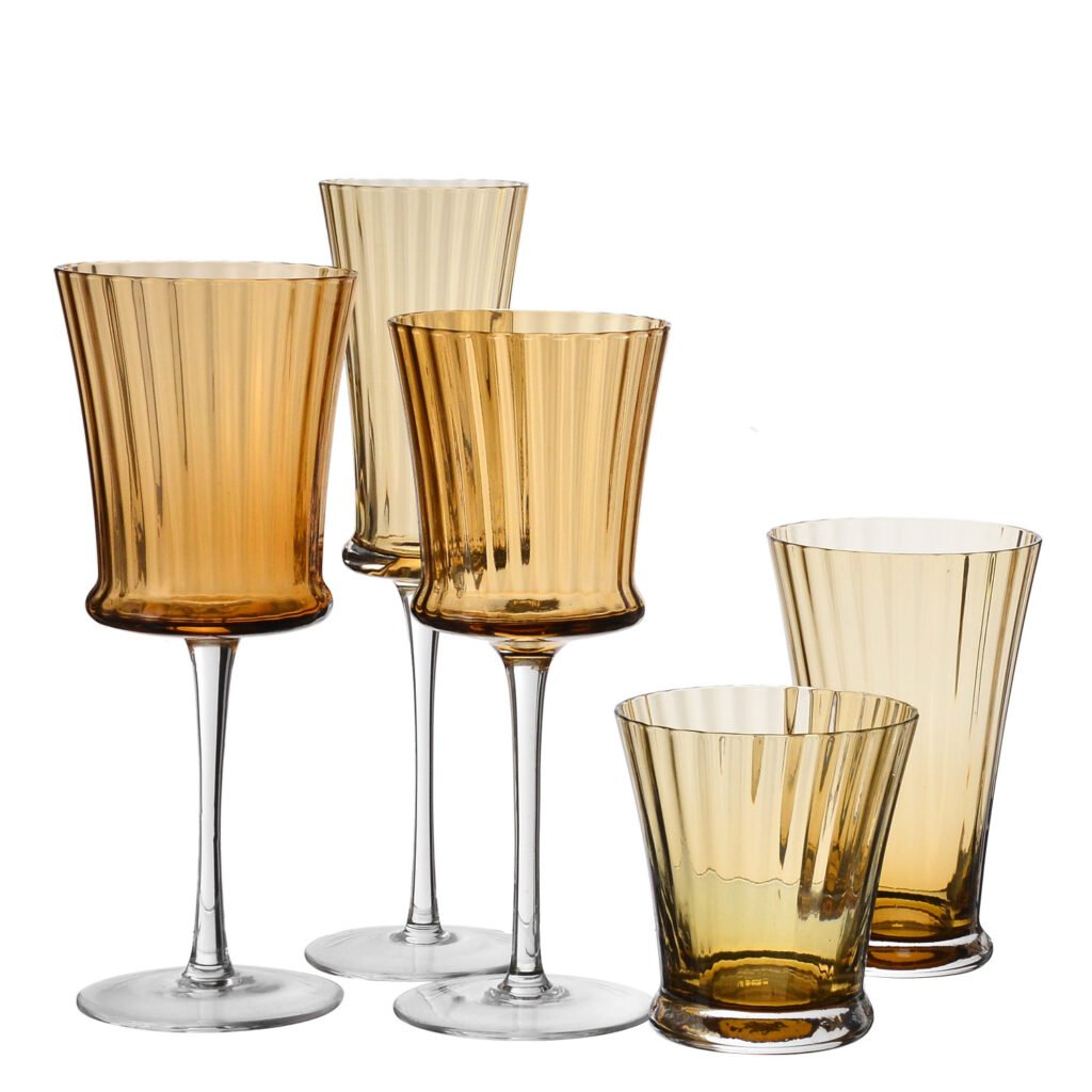 Samlife-25054 Crystal Ribbed Wine Glass Set