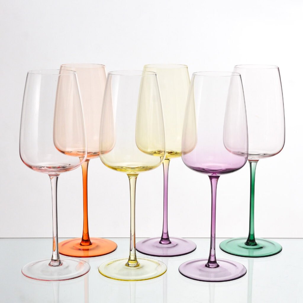 Samlife-25032 Crystal Wine Glass & Martini Glass & Champagne Flutes with colored stem