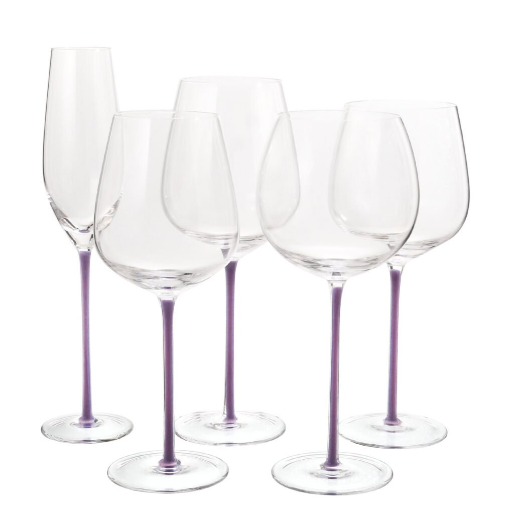 Samlife-23001 Crystal Wine Glass Set with pick & purple stem